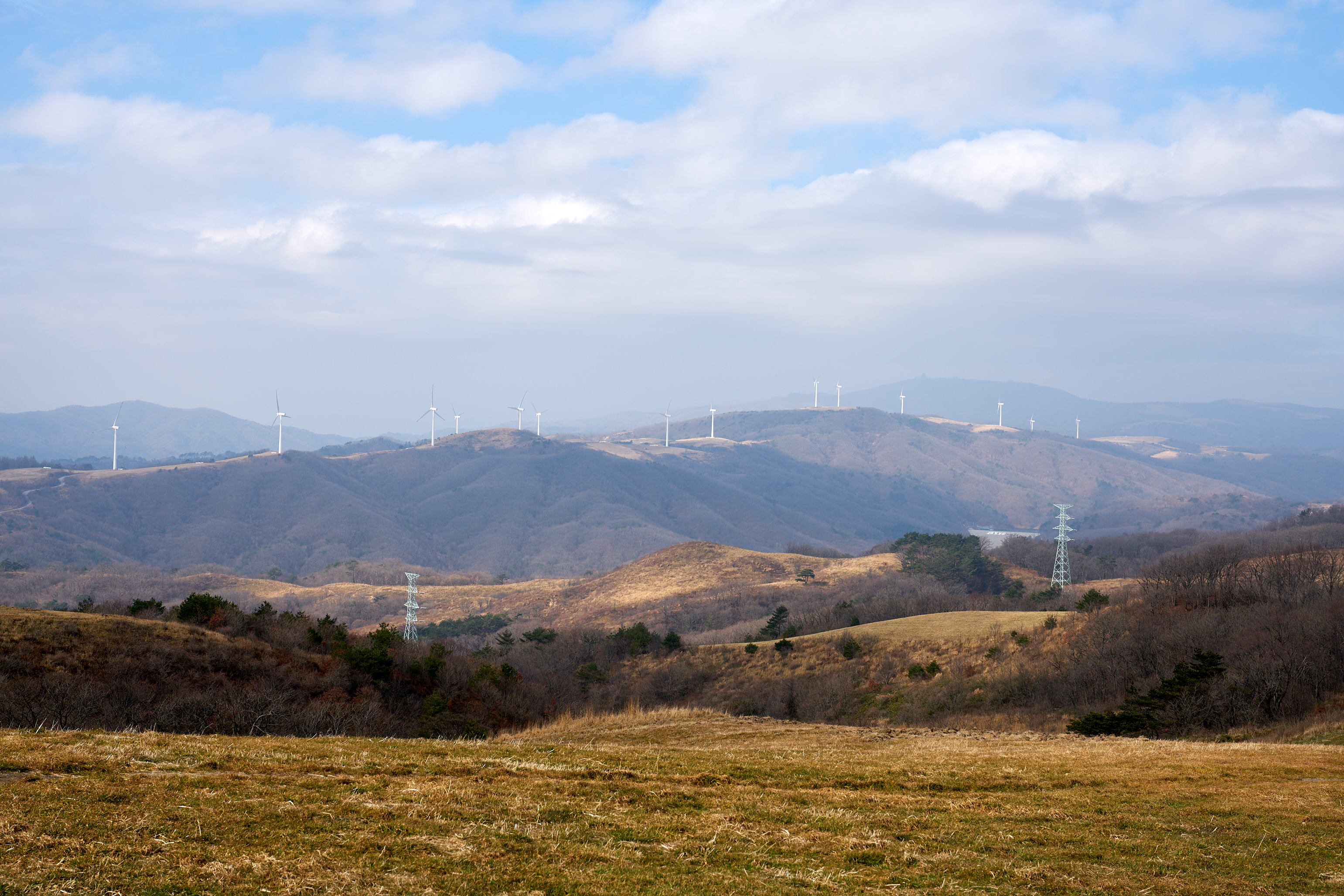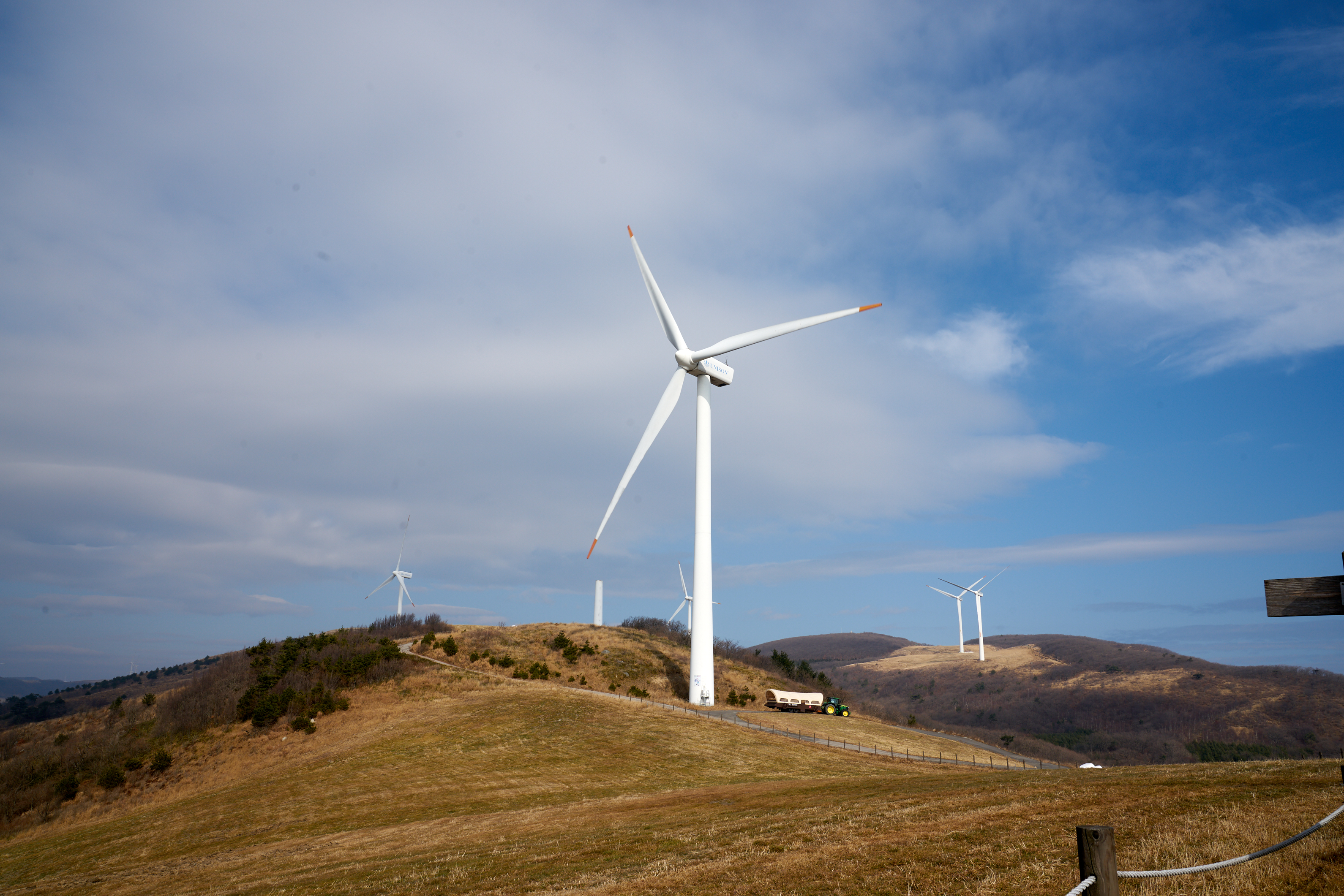 정상에 올라오면 탁 트인 풍경을 볼 수 있다. 그리고 풍력발전기들이 상당히 많다. 풍력발전기를 이렇게 가까이에서 볼 수 있는 곳이 많지 않은데.. 산 정상에 있는 풍력발전기들이 상당히 인상적이었다.