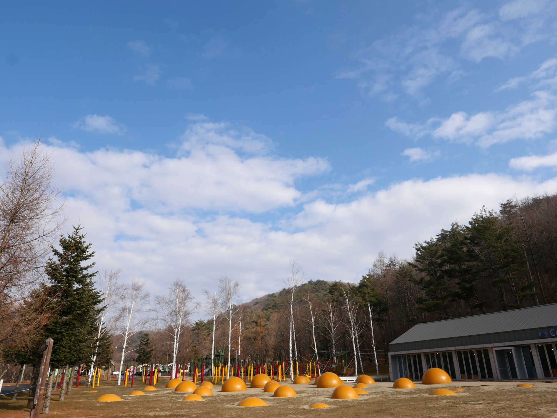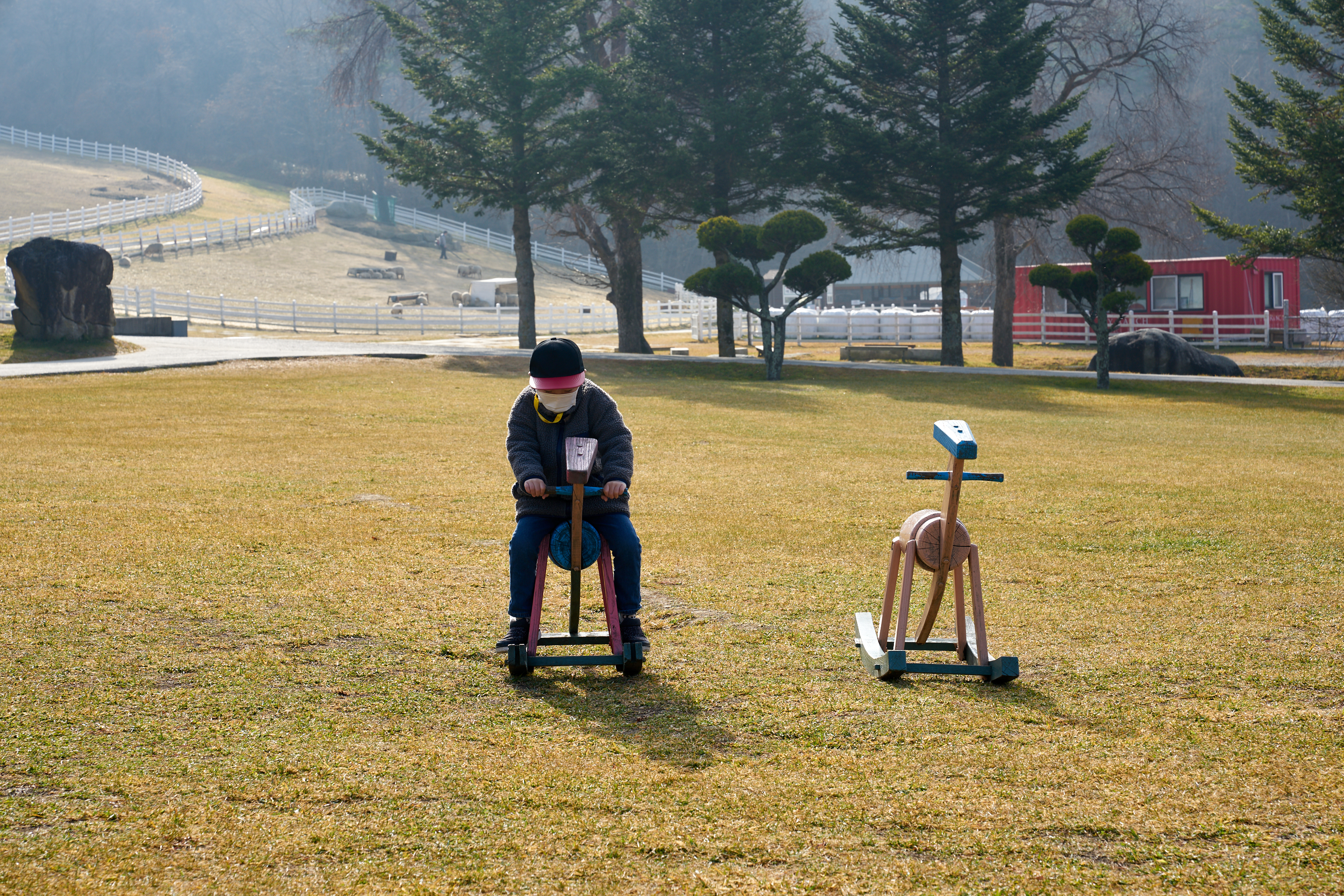 입구 바로 앞쪽 메인존에는 넓은 초지마당이 있는데 아이들이 뛰어놀기 좋게 돼있고, 소소하게 즐길거리들이 있다. 사진찍기 좋은 포인트도 많아서 사진찍는 것 좋아하시는 분들은 필수코스. 아들이나 아내가 사진찍히는걸 좀 더 좋아하면 아주 잘 즐겼겠고만.. 우리 아들이 사진찍히는걸 별로 좋아하지 않는 듯. 모든 아이들이 그러려나?