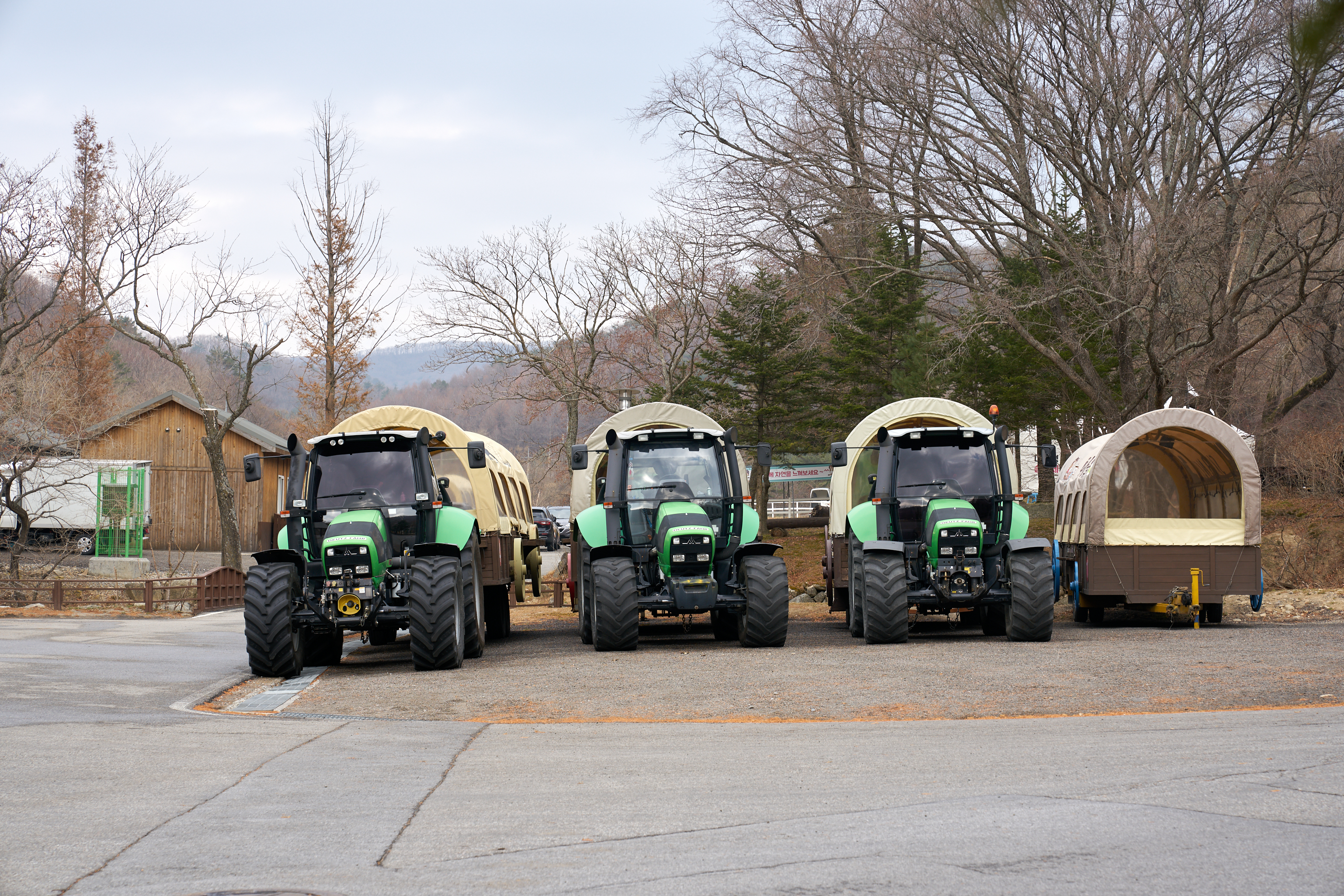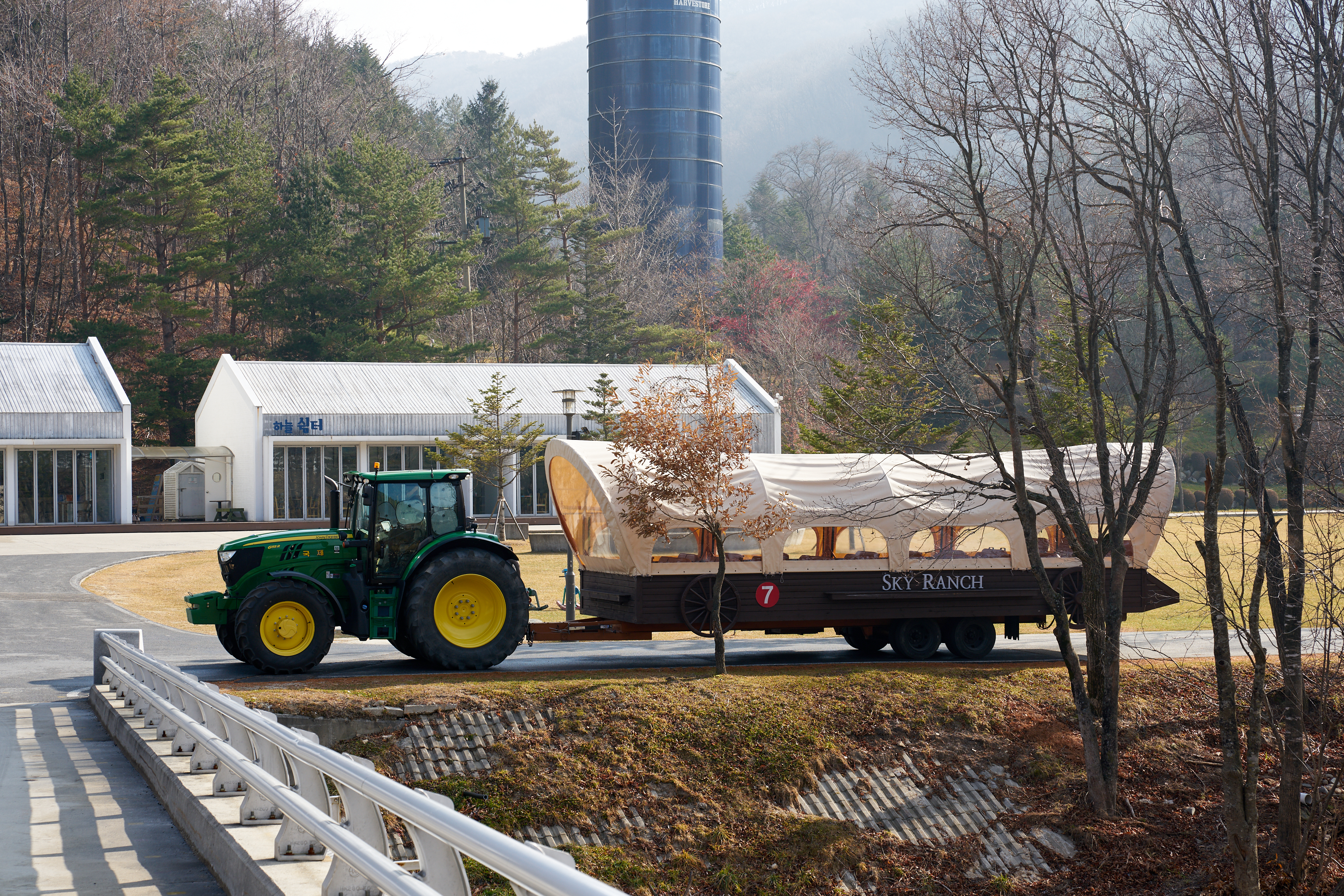 입장권을 보여주고 입구로 들어가면 눈 앞에 하늘목장 정상으로 올라가는 트랙터부터 보인다. 저게 저래보여도 엄청난 크기에 일단 놀랬다. 정말.. 정말 크다.