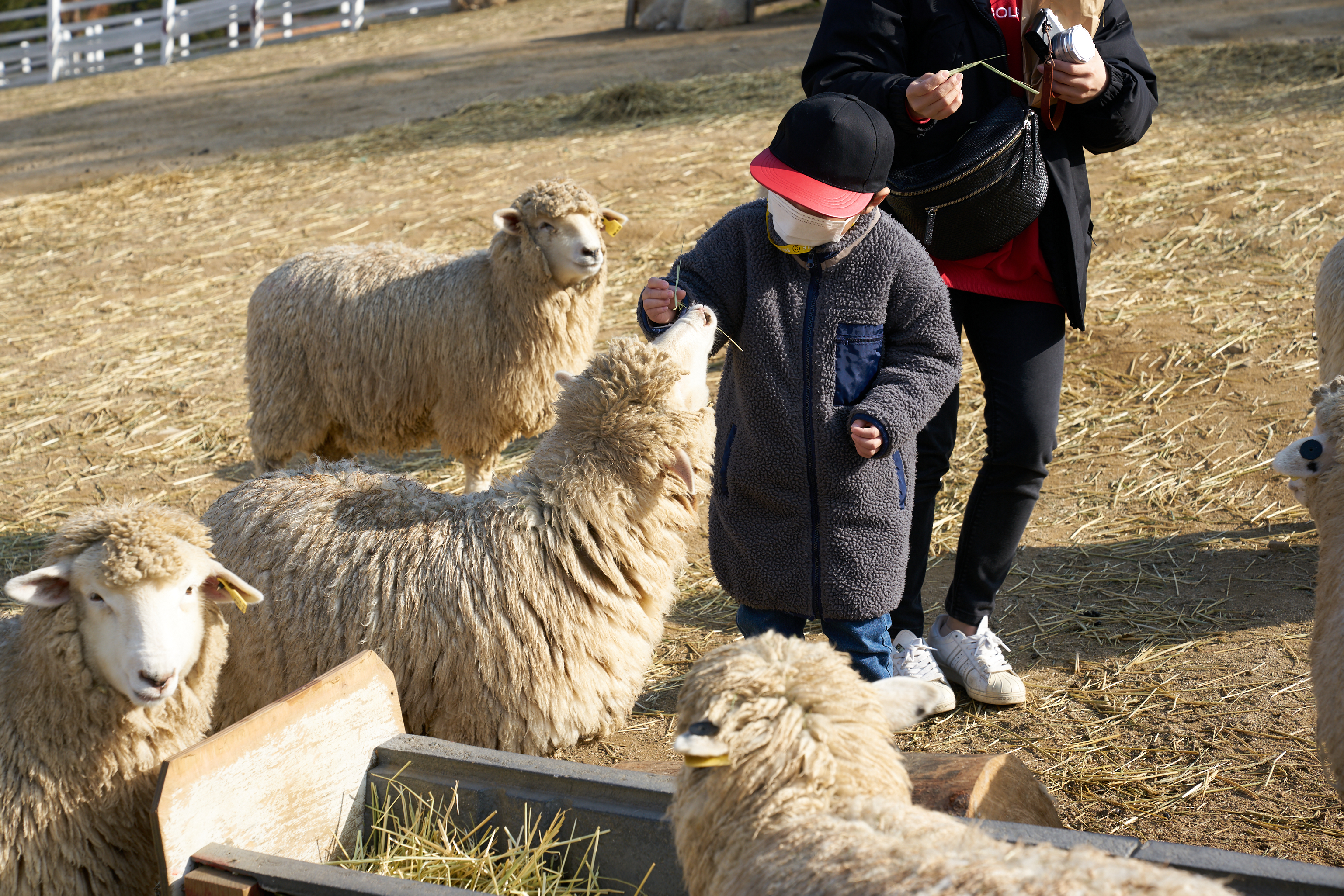 먹이주기 체험장은 방문자들이 편하게 들어갈 수 있도록 문이 만들어져있어서 자유롭게 들어갈 수 있다. 아이들이 신기하다며 소리도 지르고 뛰어다니기도 하는데.. 부모가 꼭 제어를 해줘야한다. 그렇다고 양들이 공격하진 않겠지만 양들이 놀라게되면 어떤 행동을 할 지? 알 수 없기 때문에 주의가 필요하다.