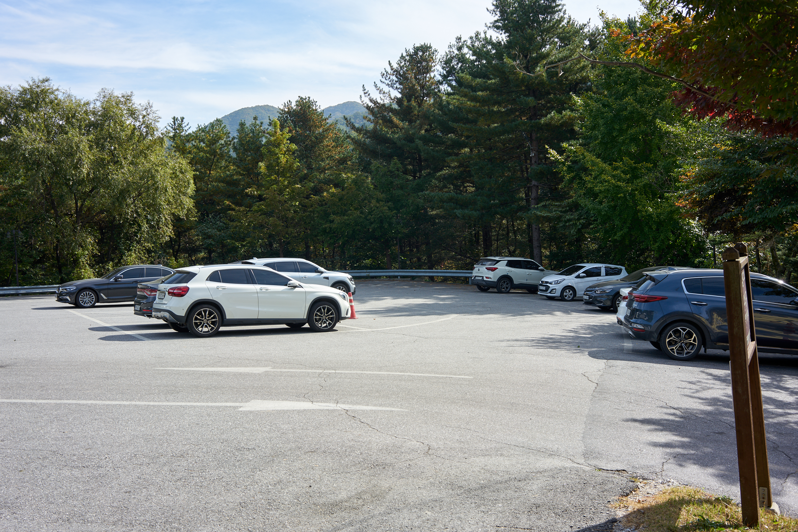 몇 번을 왔지만 이번 방문때가 사람이 가장 없었던 것 같다. 주차장이 워낙 넉넉해서 최대한 입구 가까운 쪽으로 댔다. 주의사항으로..이렇게 있는데.. 우리는 뒷자리르 활짝 열어두고 갔다는.. 정말 활짝. 음.... 아주... 아내도 나도 정신머리를 어디다 팔고 다니는지.. 몇 시간동안 훔쳐간게 아무것도 없다는 점이 더 신기했다.