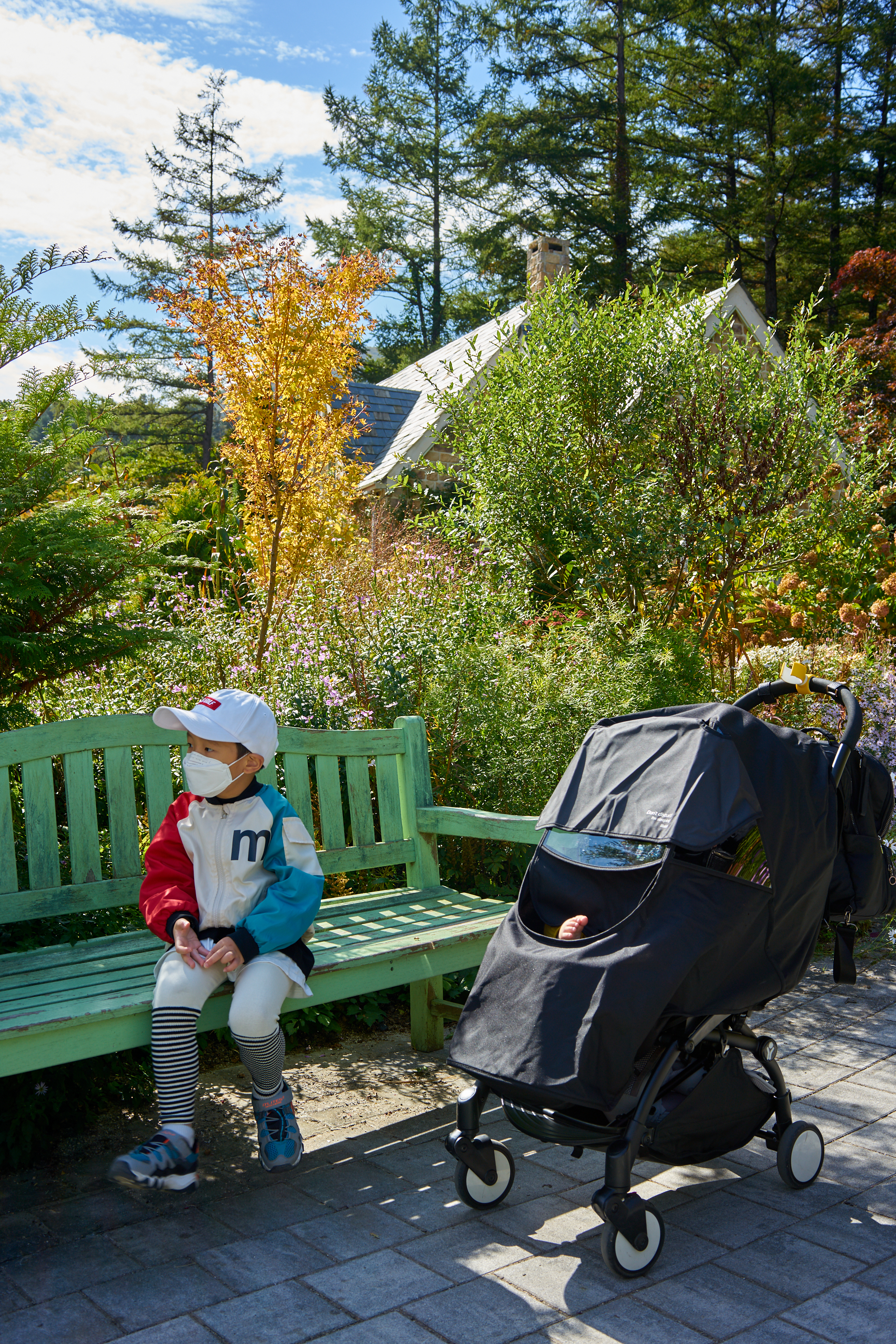 마스크를 못끼는 2번 아들은 유모차에 감금돼 잠이나 자고 있었다. 1번 아들도 이맘때는 이렇게 다녔었지..ㅎㅎ