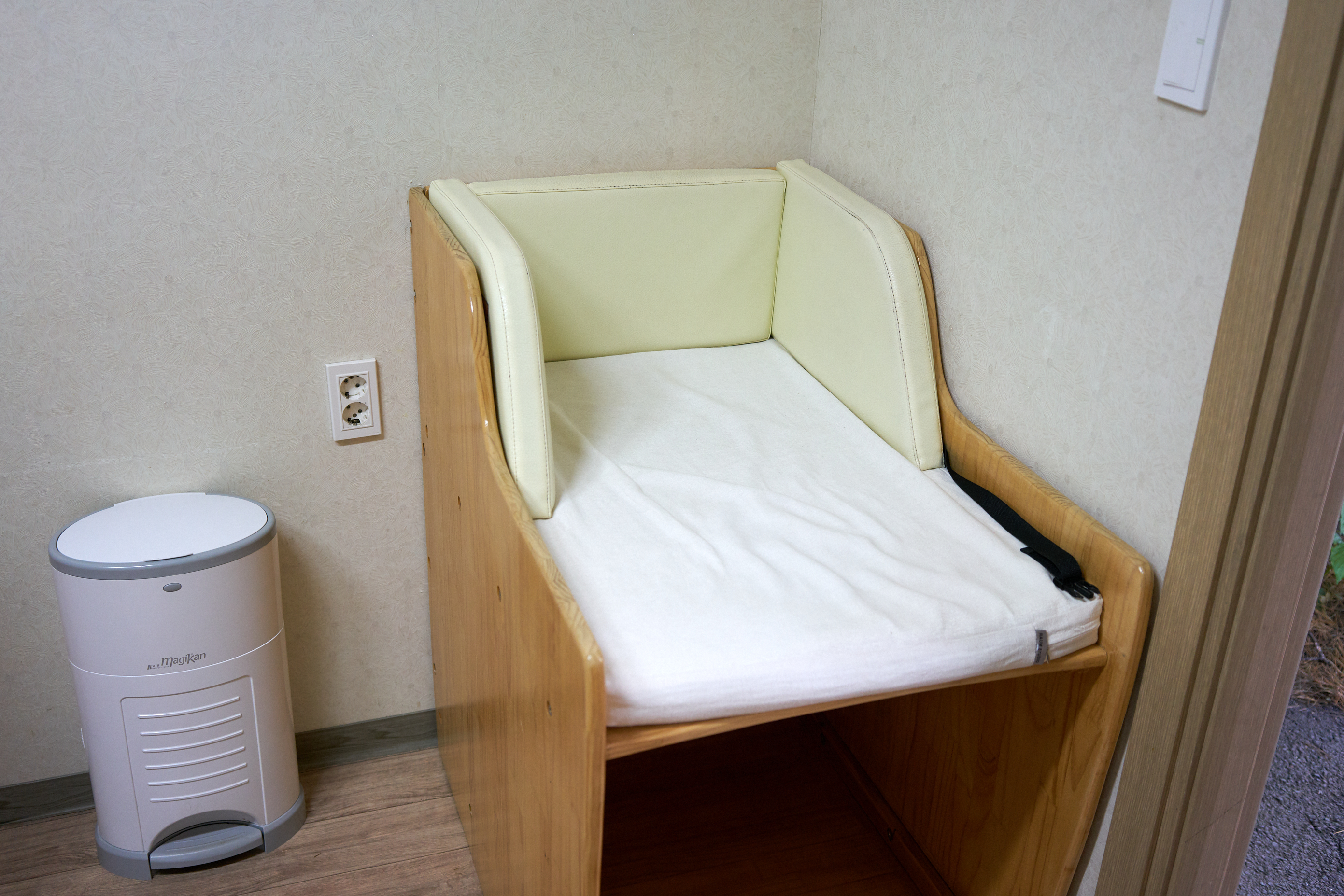 그리고 편하게 기저귀 갈아줄 수 있도록 기저귀 갈이대와 쓰레기통이 있고, 수유할 때 사용할 수 있도록 소파와 커텐이 있다. 정말 어린 아이와 함께해도 걱정하지 않아도 될 것 같다.