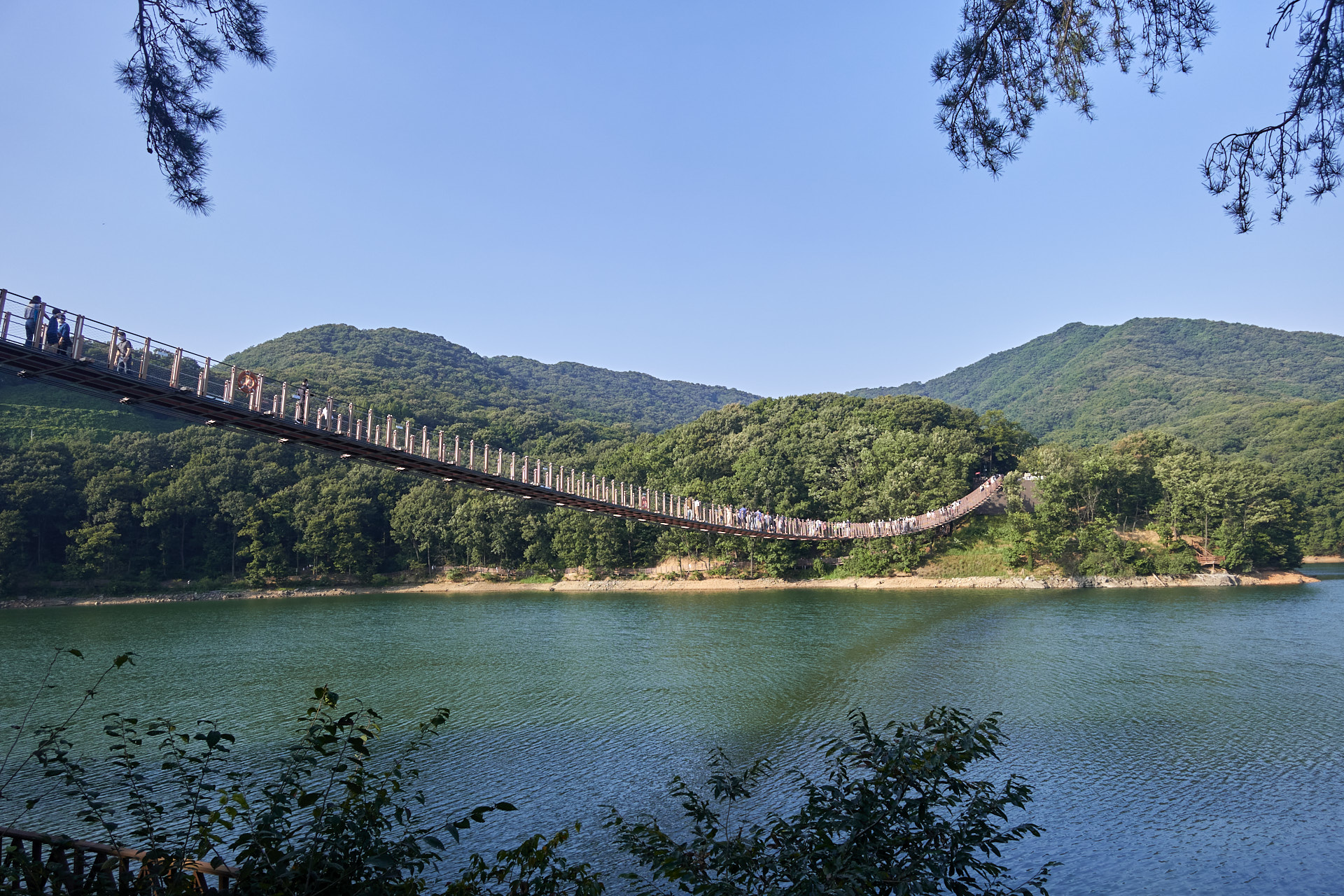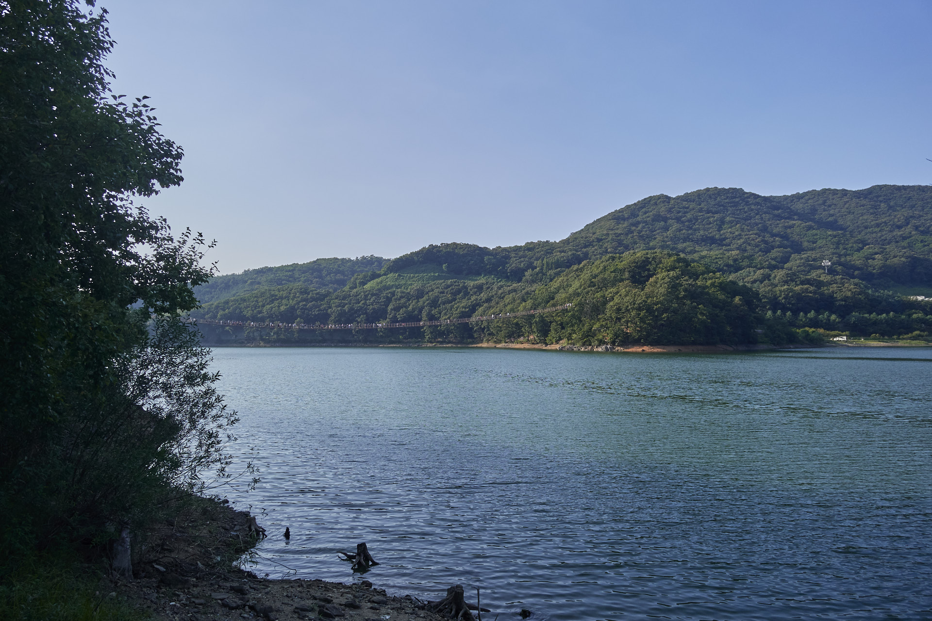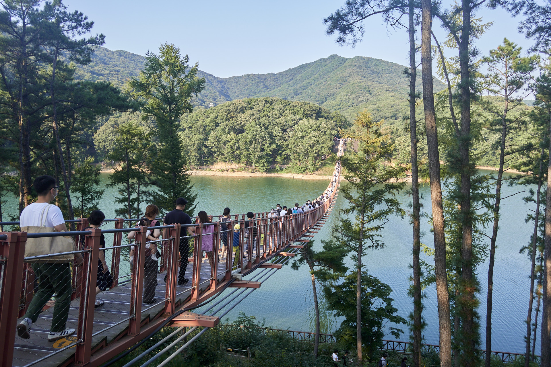 저 멀리 보이는 출렁다리. 공영주차장에서 출렁다리까지 거리가 꽤나 멀다. 30분? 40분? 걸렸던 것 같다. 왕복해서 1시간 반 정도?