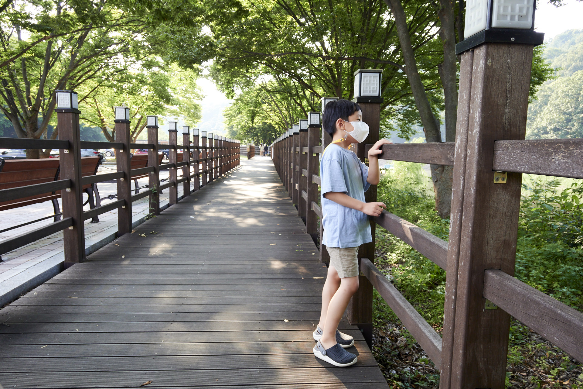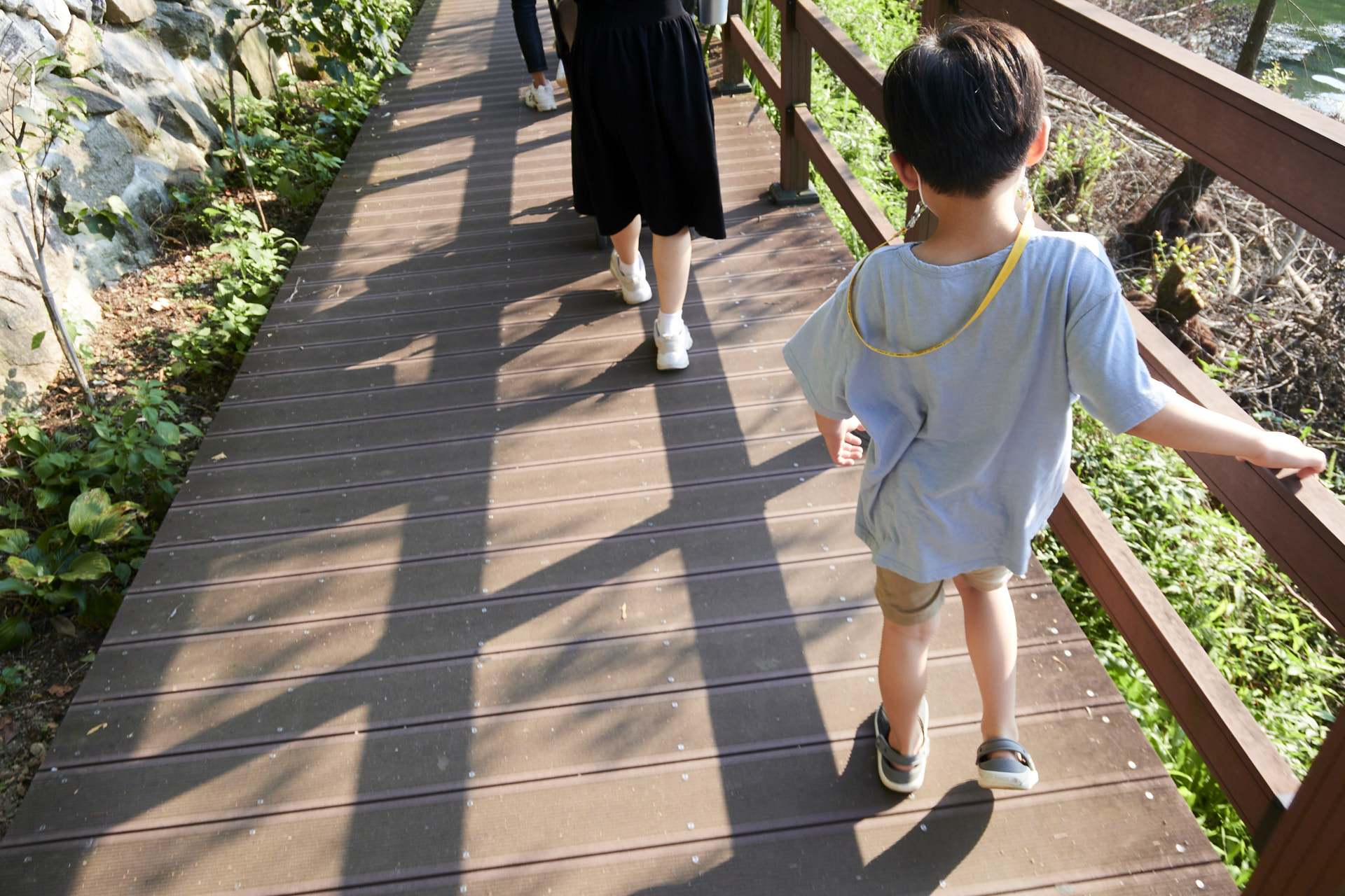 산책로는 이렇게 수변데크로 만들어져있고 폭이 꽤나 넓어서 오가는 사람들이 서로 불편하지 않았다. 그리고 잘 유모차도 잘 갈 수 있다는 점~ 그리고 울타리가 있어서 어린 아이들이 그냥 걸어가도 안전했다.
