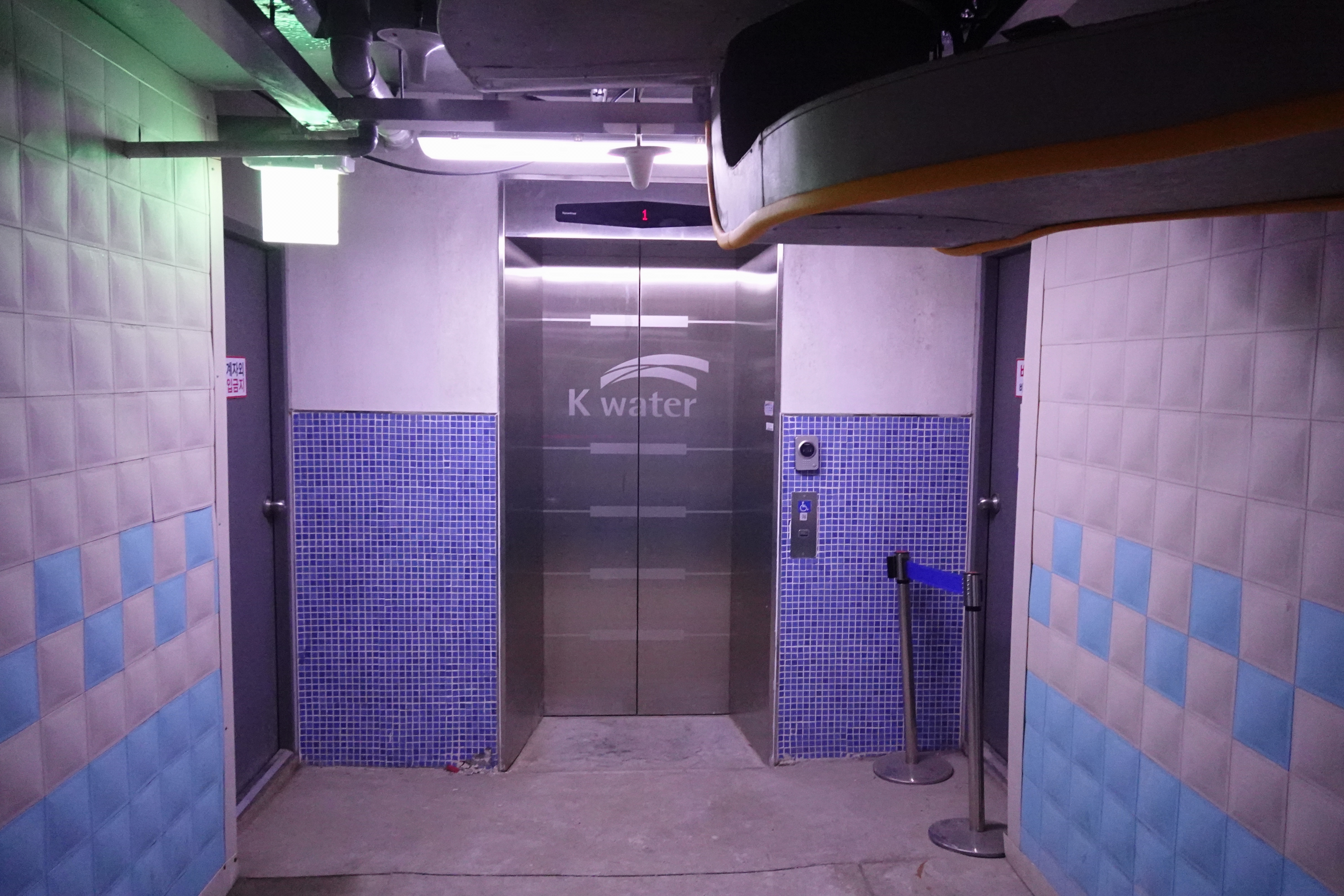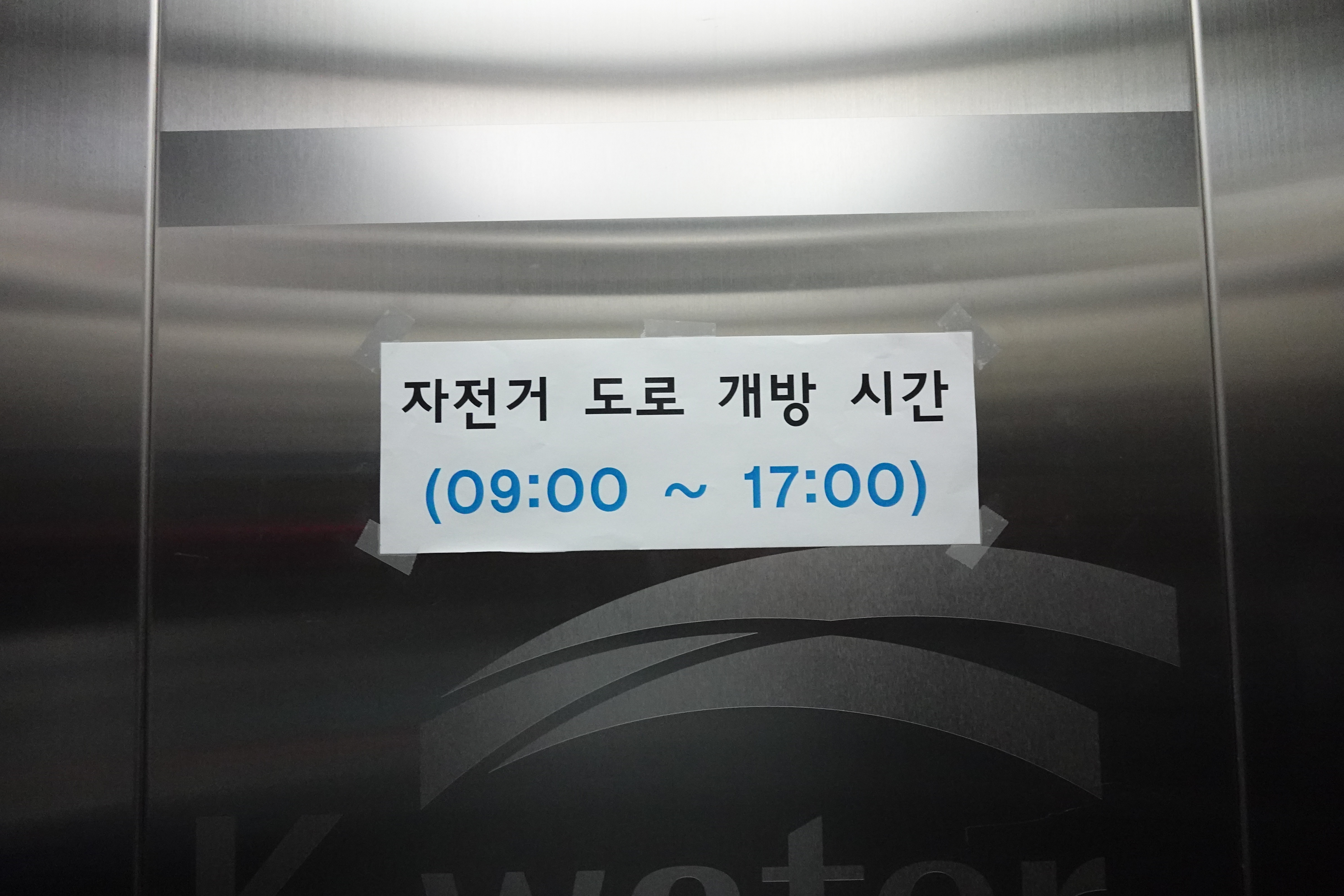 아라한강갑문 자전거길 끝까지 들어오면 엘리베이터가 있다. 딱 자전거 1~2대 정도 들어갈 사이즈의 작은 엘리베이터.