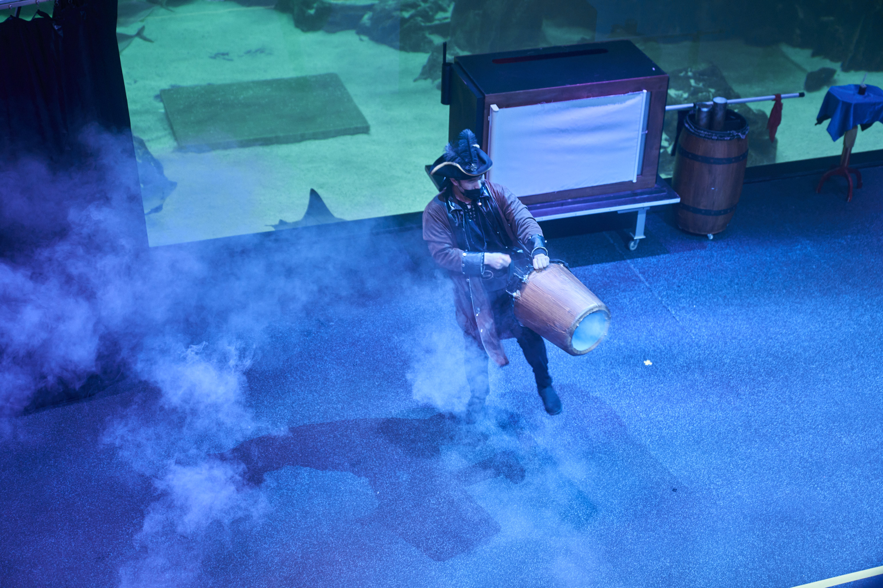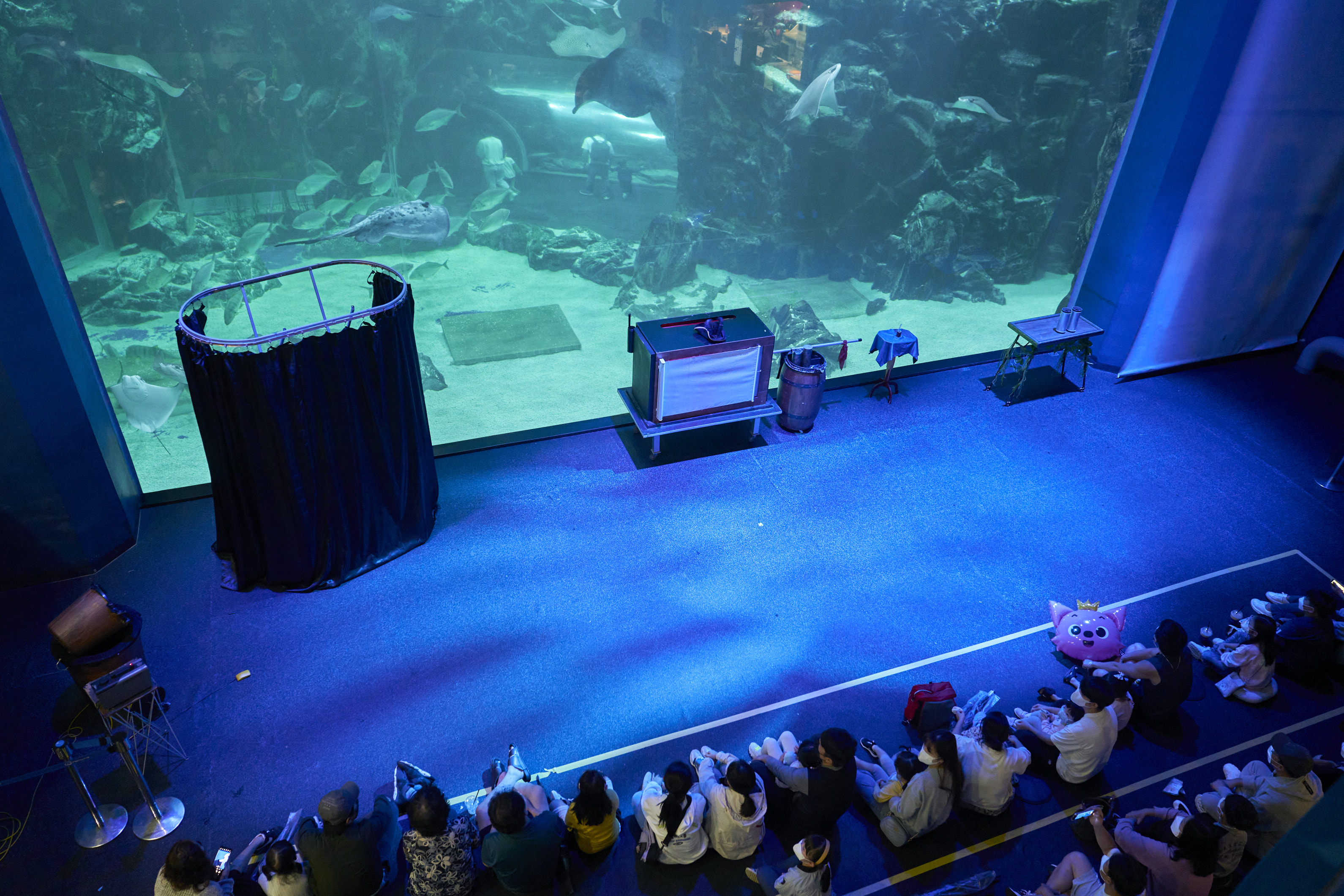 메인수조의 크기는 엄청 큰데 옆으로 넓지 않아서 생각보다 광활한 느낌은 없었다. 여기 공간 자체가 넓어서 시간마다 공연도 하는 자리. 공연을 하기까지 15분 정도 남아서 잠깐 기다렸다가 가기로 했다.