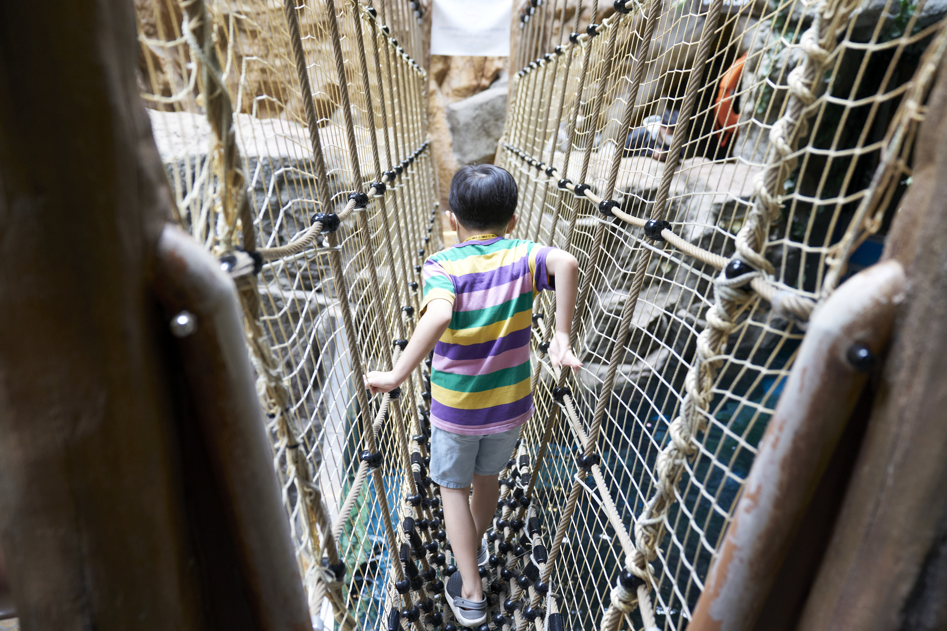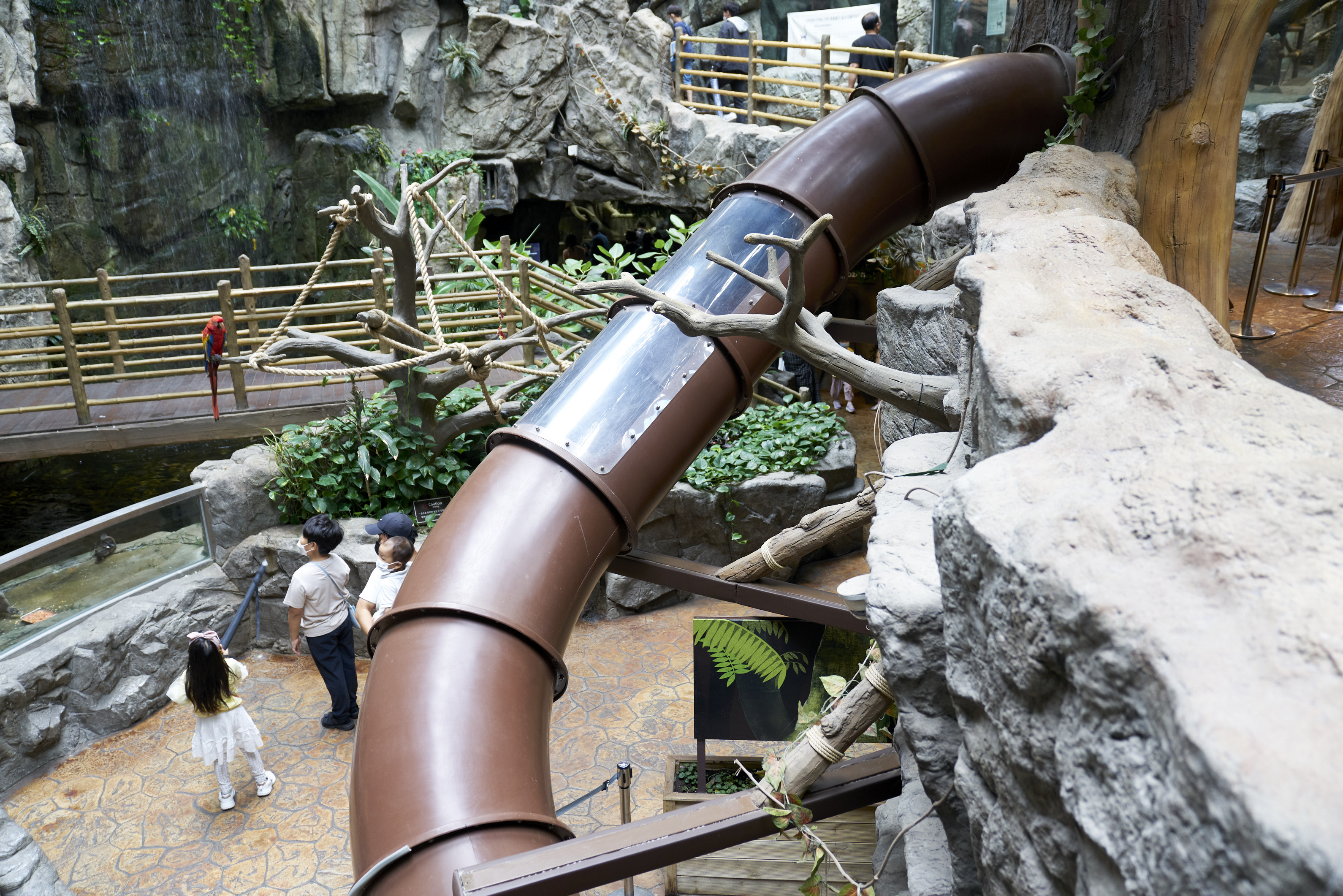 마지막 공간으로 나오면 아이들이 놀 수 있는 놀이터 공간이 있는데.. 여기가 진짜 핫플이었다. 애들이 다 어디갔나 했더니 여기에 다 모여있었다. 브릿지도 건너보고 미끄럼틀도 타고..