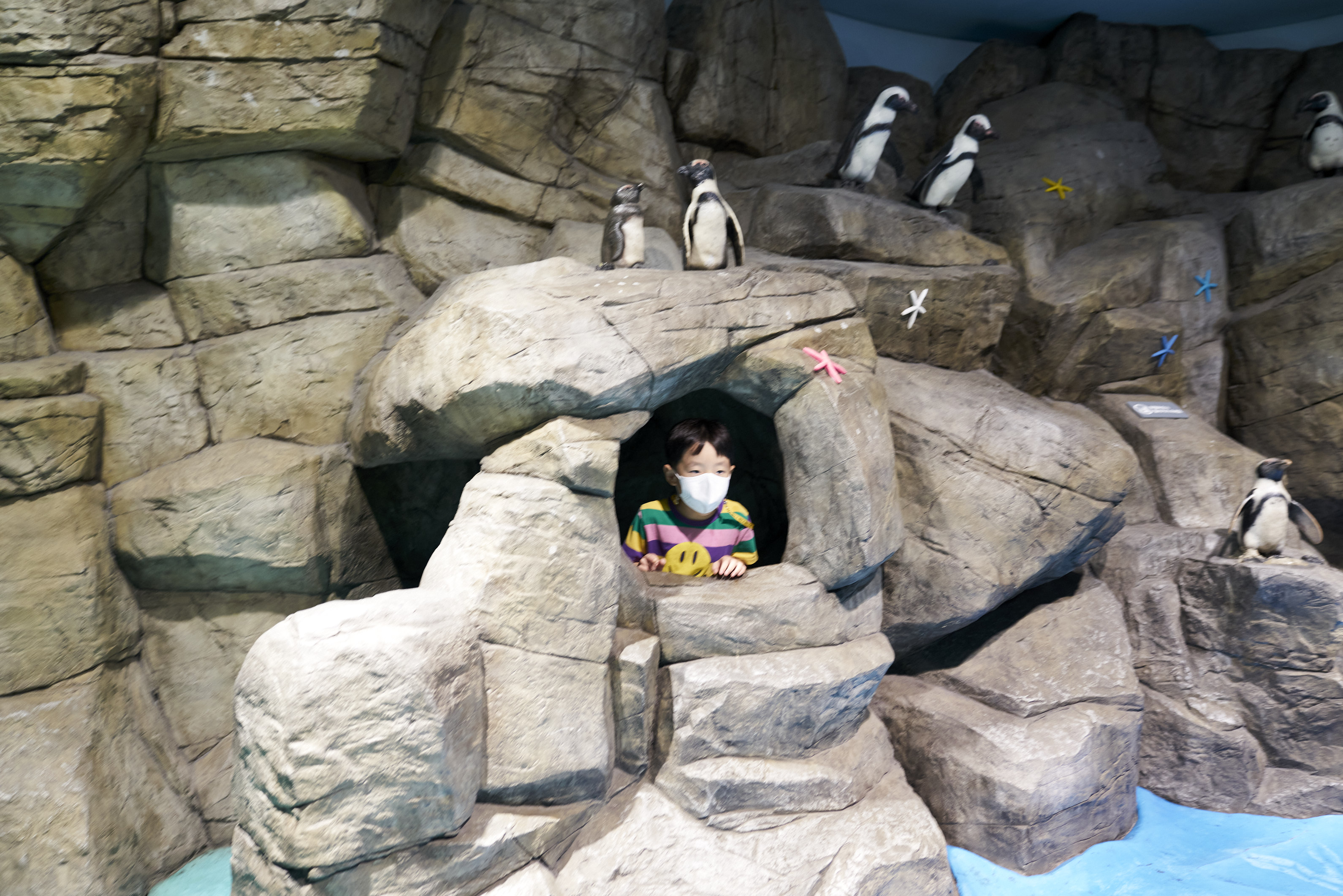 그리고 펭귄녀석들. 다른 아쿠아리움에 비해 일산 아쿠아플라넷은 펭귄이 있는 곳이 유리로 막혀있지 않고 뻥 뚤려있다. 그래서 그런지 펭귄들이 전체적으로 얼어서 움직이지 않고.. 얼음처럼 얼어있었다. 참 안타까운게 사람들이 조금 더 가까이에서 볼 수 있도록 만든 건 좋은데 펭귄이 스트레스 받는 것을.. 어찌하리..