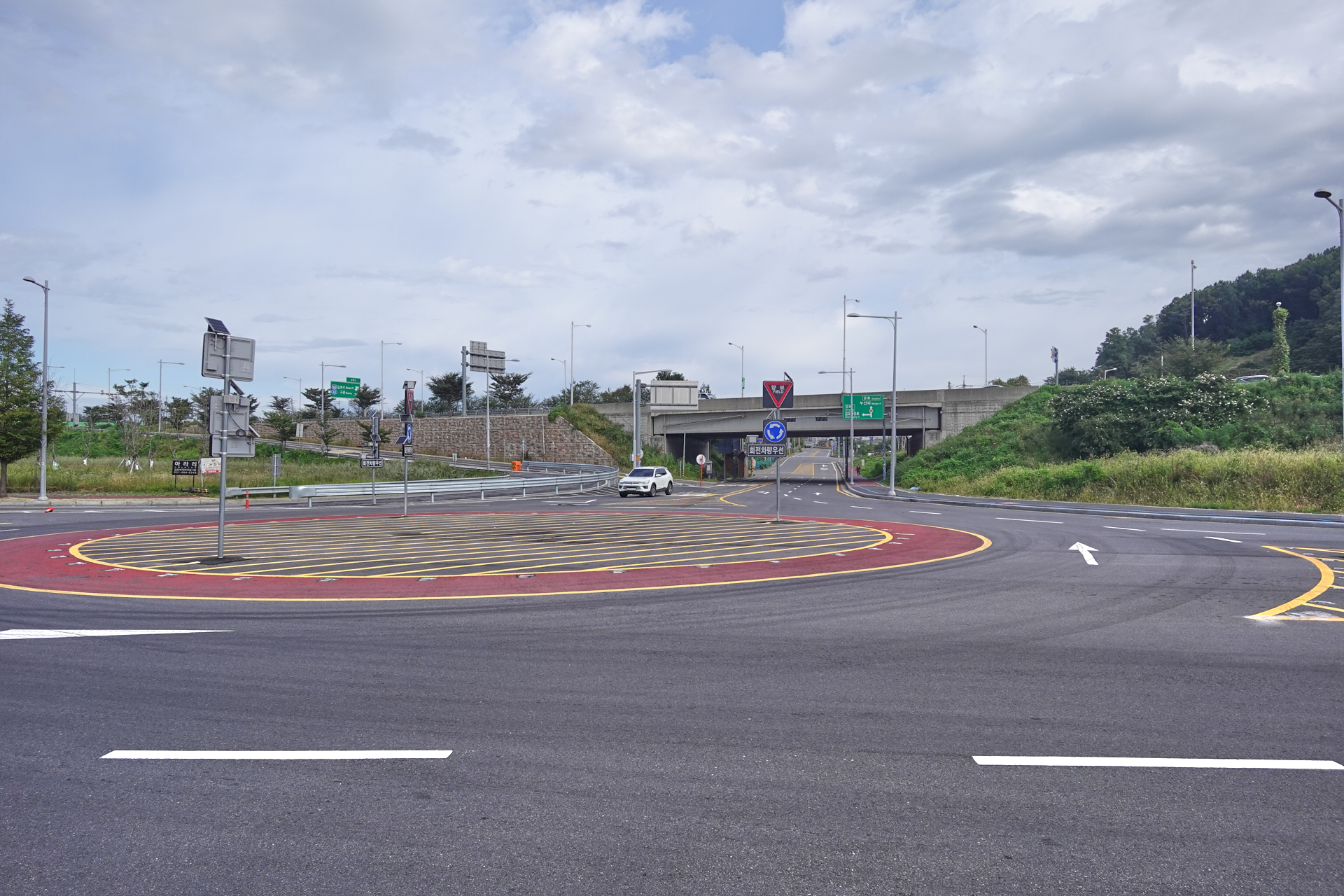 전호교를 건너면 오른쪽으로 회전교차로가 있는데 교차로 아래로 따라가면 자연스럽게 김포 평화누리 자전거길과 연결됩니다. 단 여기서부터는 자전거 전용도로가 아니라 자동차가 같이 다니는 자전거우선도로라 조심해서 다니셔야 합니다. 자전거 우선도로라해도 왕복 2차선의 좁을 도로고 생각보다 차량이 많이 다니는 길이라 항상 주의가 필요합니다. 특히 김포는 아직 덤프트럭이나 대형트럭이 많이 다니는데.. 여기가 딱 그런 차량들이 많이 다니는 구간입니다.