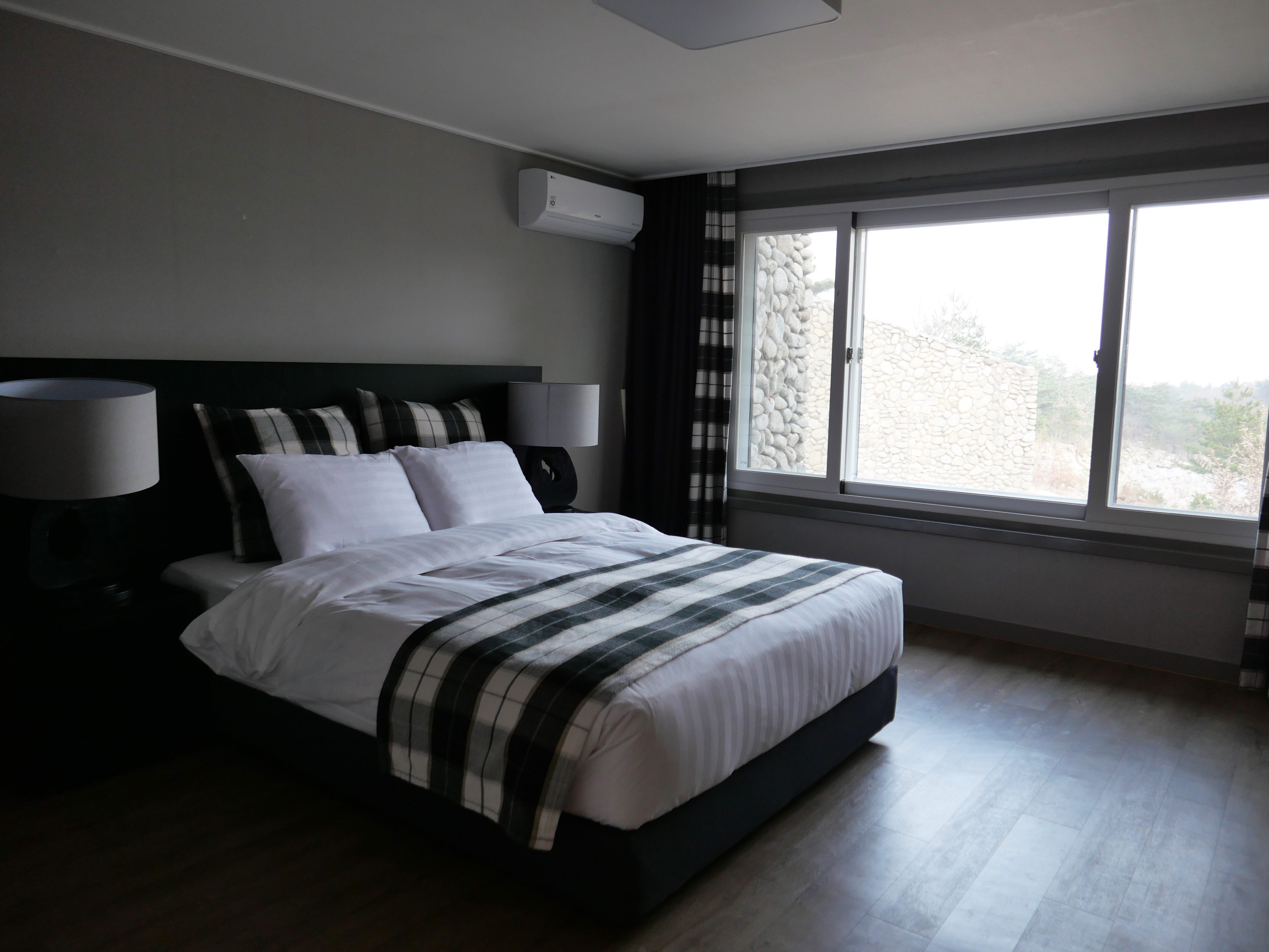 룸 크기는 적당해서 4인 가족이 사용하기에 부족하지 않다. 화장실 1개 침대방2개 온돌방 1개가 있었고.. 맞나? 아무튼 전체적으로 아주 깔끔했던 것 같다. 일반 리조트보다는 부티크호텔 같은 느낌? 그리고 주방에 각종 집기들은 기본이었고 밥솥과 전자렌지가 기본으로 있어서 좋았다. 어린 아이와 함께하는 분들이라면 아주 만족하실 듯 싶다. 전자렌지...이게 정말 크거든.