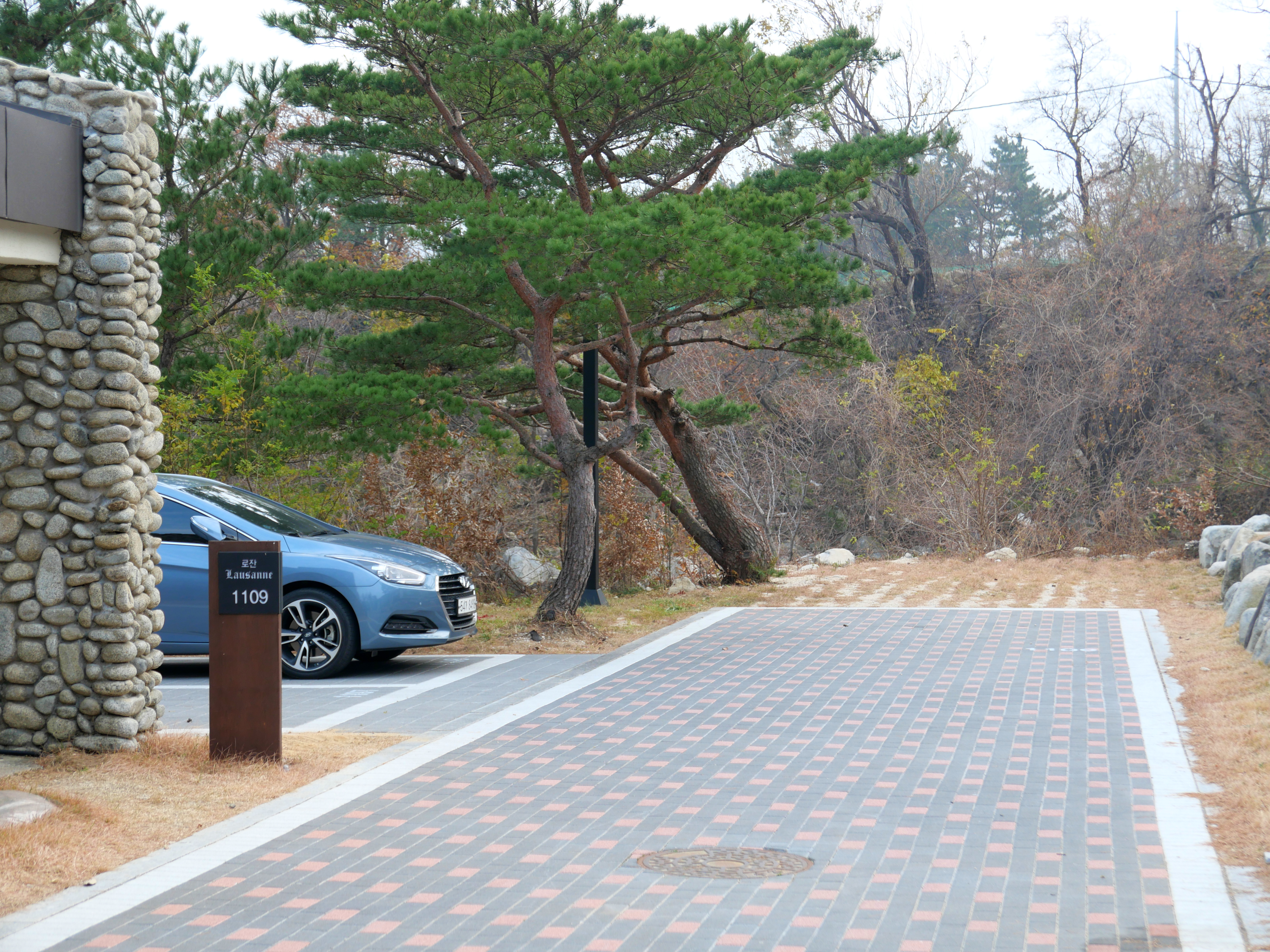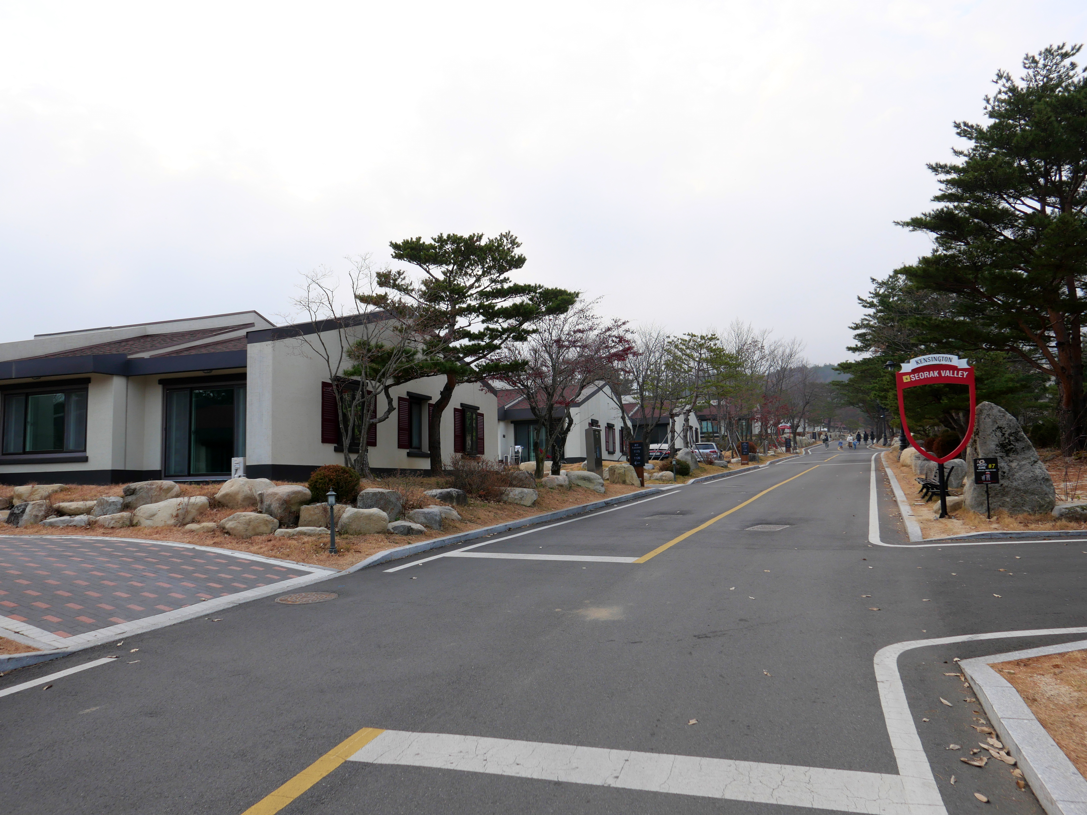 켄싱턴리조트 설악밸리가 살짝 구석진 곳에 있는데 다른 리조트들과 달리 입구까지 가는 길이 꽤나 멋스럽게 만들어져있다. 길 양옆으로 큰 나무들이 심어져있고, 몇 년 지나 나무들이 더 크고 무성해지면 더 봐줄만할 것 같다. 길이 아스팔트가 아니라 인도석을 리조트 입구까지 쭈욱 깔아놨다. 고급스러운 느낌은 있는데 군데군데 깨진 곳이 있어서 울퉁불퉁한 곳도 있다. 보수가 살짝 필요해보인다.
