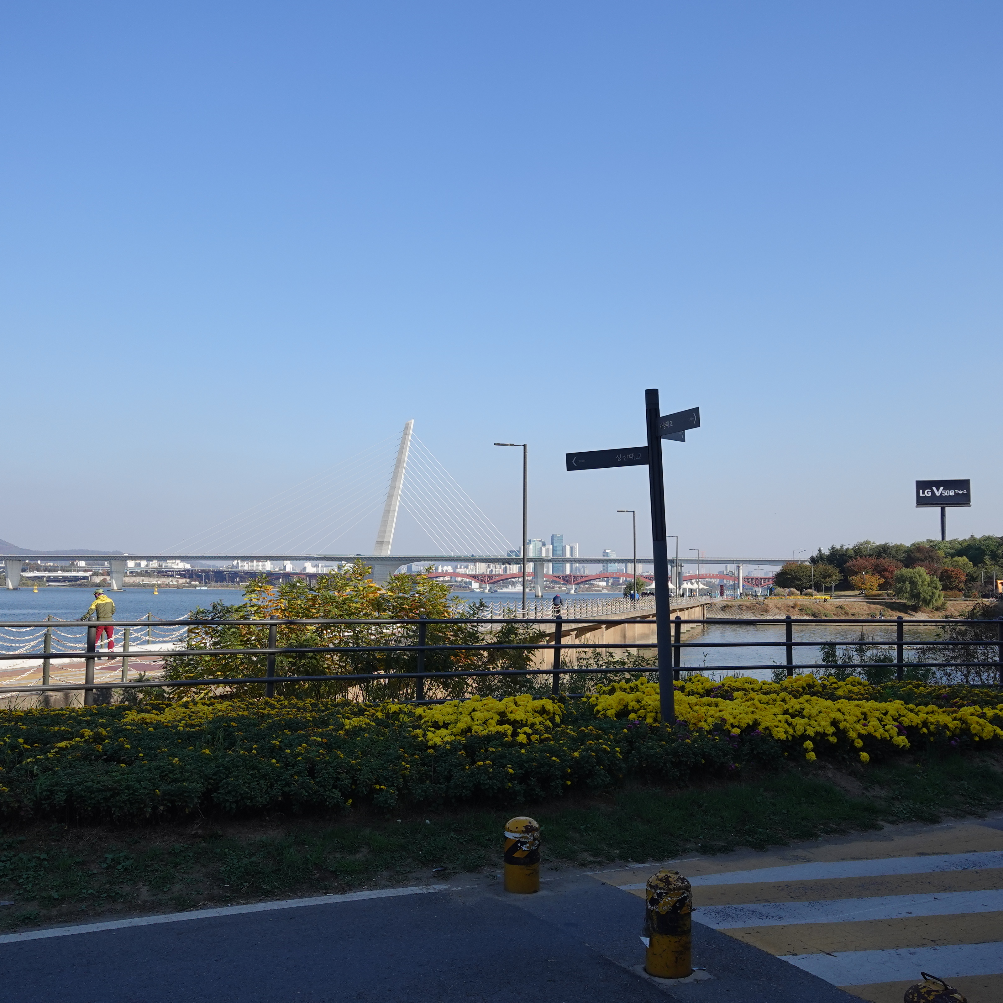 대충.. 위치는 가양대교와 방화대교 사이 어디쯤 인 듯 싶다. 미세먼지가 안좋다고 해서 마스크를 끼고 나왔는데.. 하늘이 퍼런 것이 라이딩 하기에 엄청 좋은 날씨였다. 그래서 그런지 자전거 타는 분들도 많았고 산책하는 분들도 많아서 조심조심 다녔다.